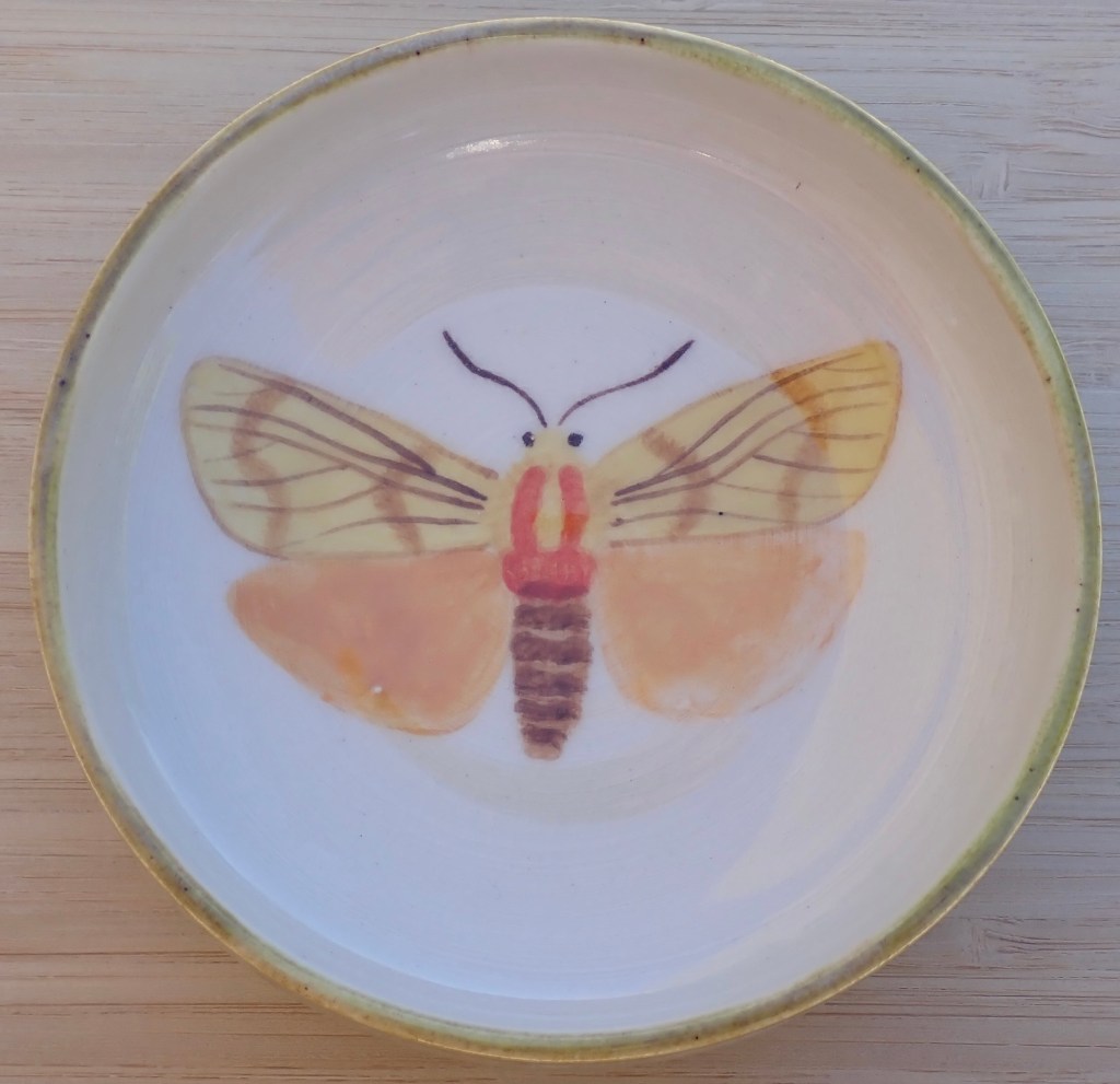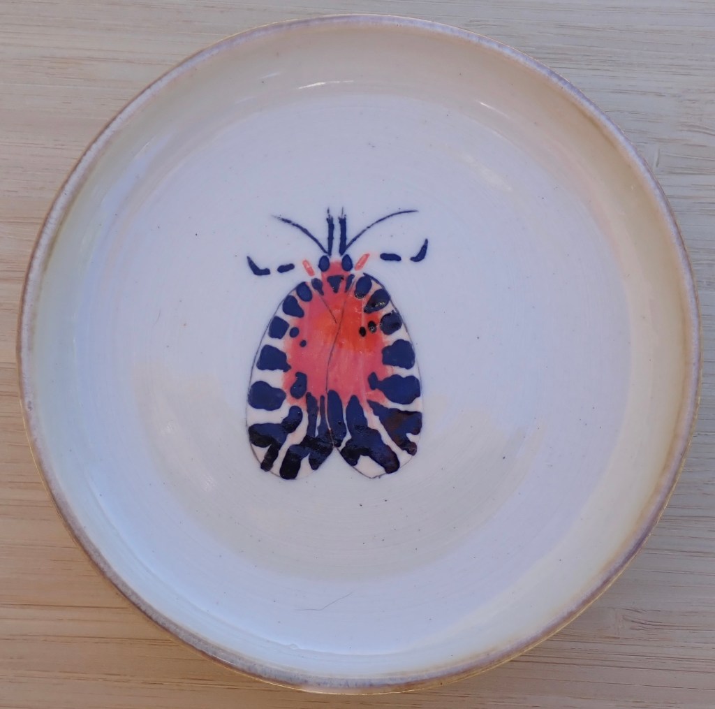 I use scientific reference imagery to hand-paint insects on functional porcelain items. I have always been fascinated by insects. While I don’t fully research every insect that I paint, I often notice small details while I paint them that I would otherwise overlook.